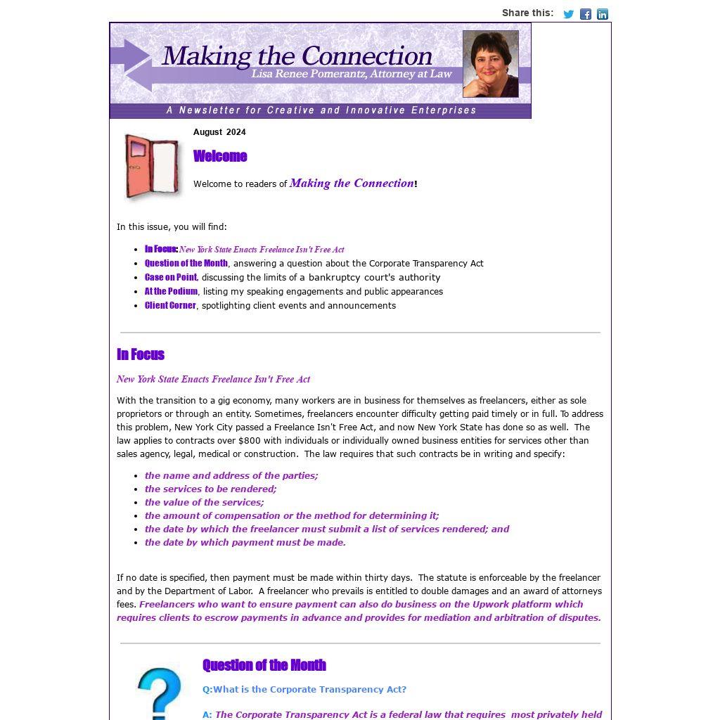 With the transition to a gig economy, many workers are in business for themselves as freelancers, either as sole proprietors or through an entity. Sometimes, freelancers encounter difficulty getting paid timely or in full. To address this problem, New York City passed a Freelance Isn't Free Act, and now New York State has done so as well. The law applies to contracts over $800 with individuals or individually owned business entities for services other than sales agency, legal, medical or construction. The law requires that such contracts be in writing and specify: