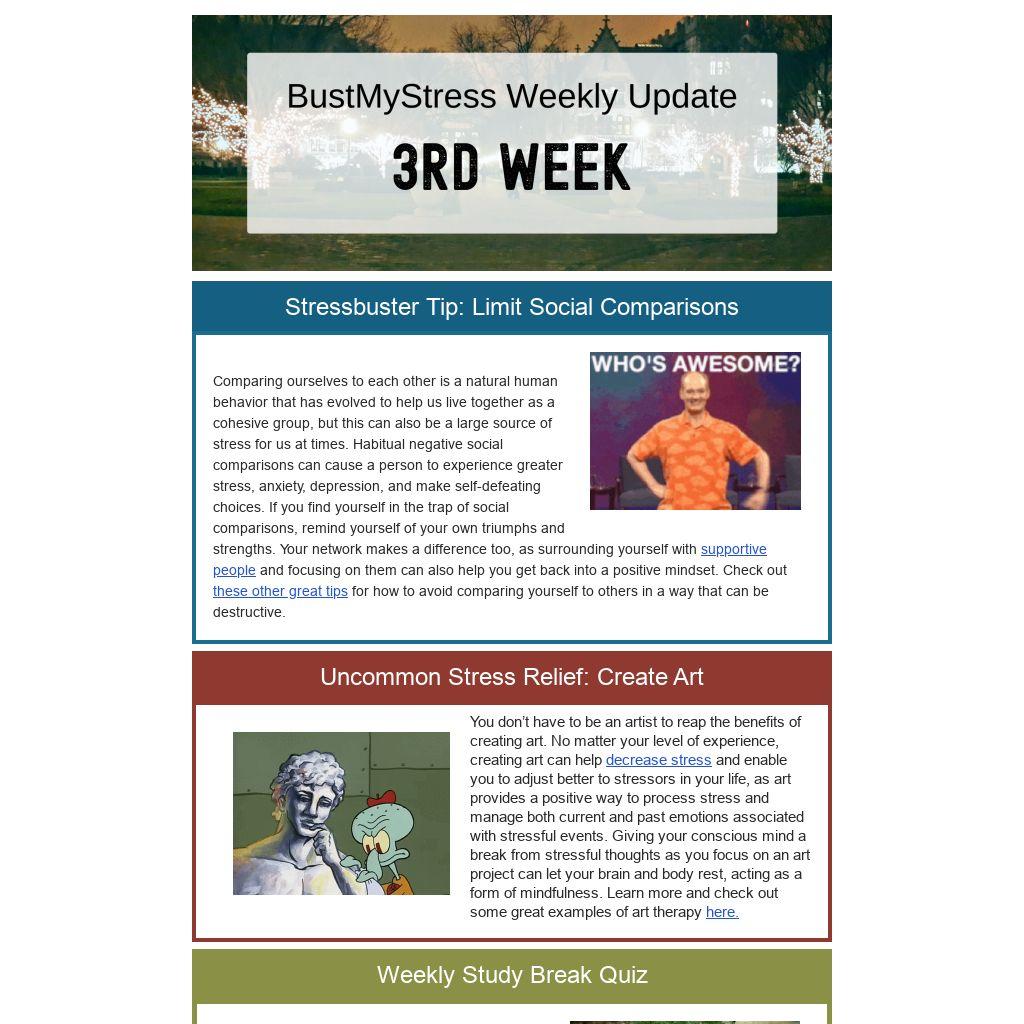 Comparing ourselves to each other is a natural human behavior that has evolved to help us live together as a cohesive group, but this can also be a large source of stress for us at times. Habitual negative social comparisons can cause a person to experience greater stress, anxiety, depression, and make self-defeating choices. If you find yourself in the trap of social comparisons, remind yourself of your own triumphs and strengths. Your network makes a difference too, as surrounding yourself with supportive people and focusing on them can also help you get back into a positive mindset. Check out these other great tips for how to avoid comparing yourself to others in a way that can be destructive.