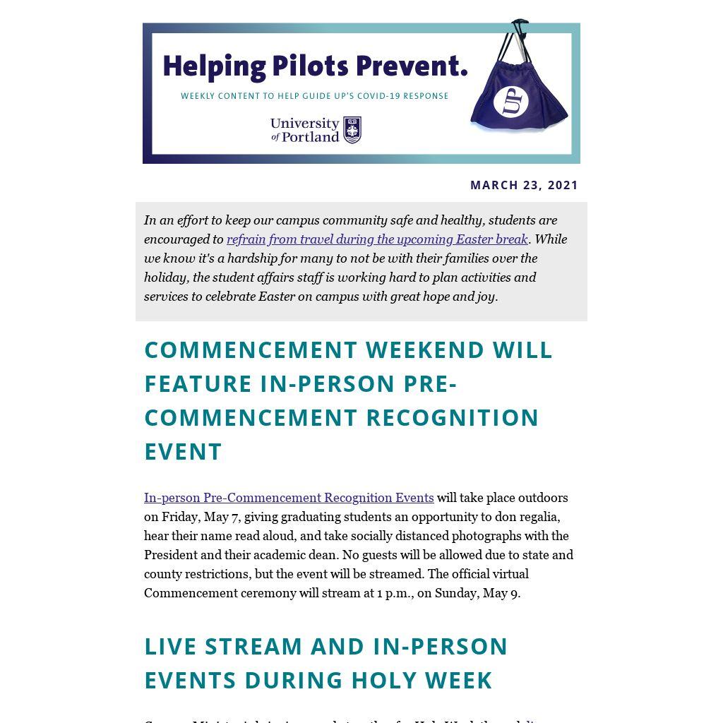 Helping Pilots Prevent Weekly Content to Help Guide UP's COVID-19 Response