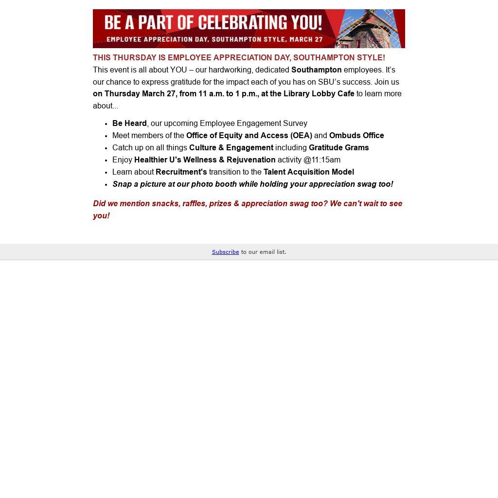 THIS THURSDAY IS EMPLOYEE APPRECIATION DAY, SOUTHAMPTON STYLE!