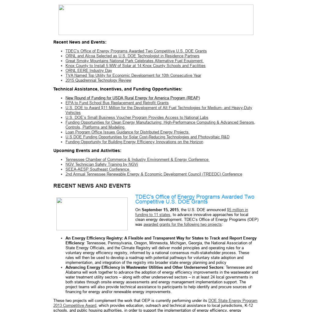 | TDEC's Office of Energy Programs Awarded Two Competitive U.S. DOE Grants