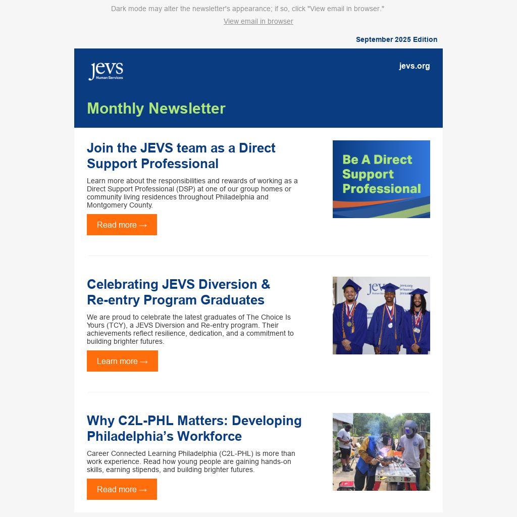 Dark mode may alter the newsletter's appearance; if so, click "View email in browser."