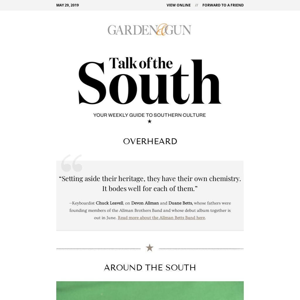 —Keyboardist Chuck Leavell, on Devon Allman and Duane Betts, whose fathers were founding members of the Allman Brothers Band and whose debut album together is out in June. Read more about the Allman Betts Band here.