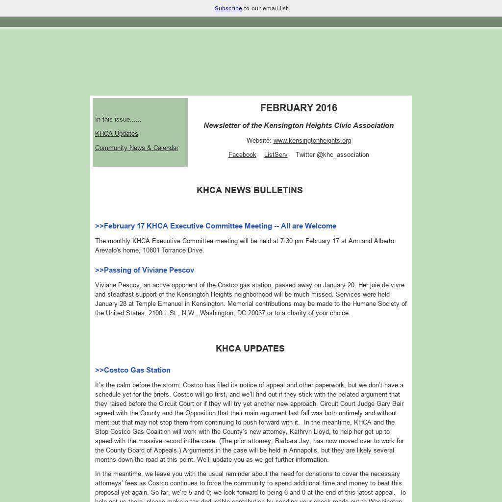 >>February 17 KHCA Executive Committee Meeting -- All are Welcome