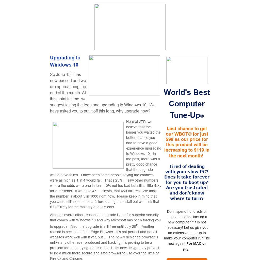 Here at ATR, we believe that the longer you waited the better chance you had to have a good experience upgrading to Windows 10. In the past, there was a pretty good chance that the upgrade would have failed. I have seen some people saying the chances were as high as 1 in 4 would fail. That’s 25%! I saw other numbers where the odds were one in ten. 10% not too bad but still a little risky for our clients. If we have 4500 clients, that 450 failures! We think the number is about 5 in 1000 right now. Please keep in mind that you could still experience a failure during the install but we think that it’s unlikely for the majority of our clients.