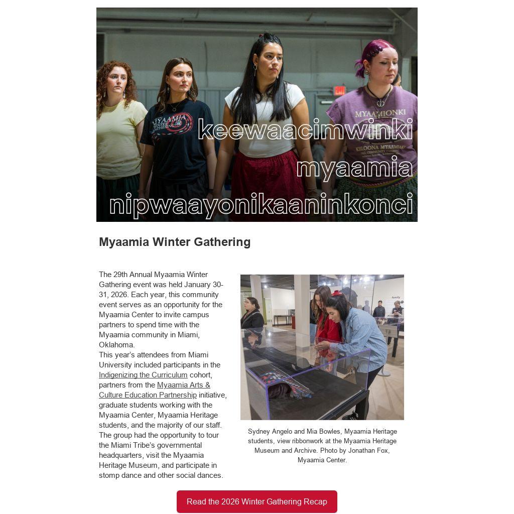 Keeping with these seasonal shifts, Myaamia Center staff opened up our siihsipaahkwikaani ‘sugar camp’ on campus by tapping ten trees. For the next three to four weeks, we’ll be harvesting sap and cooking it down to make maple syrup. Later in the spring, we’ll share the product of this work with our students at our annual waffles and syrup feast.