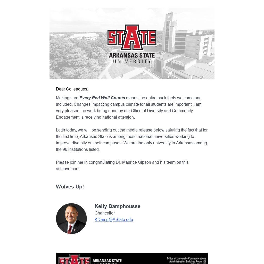 "The HEED Award is one of the most distinguished diversity awards in higher education. A-State’s inclusion as an awardee for the first-time really demonstrates the substantial progress we have made and showcases our firm commitment to advancing diversity and community engagement," stated Gipson, who is vice chancellor for diversity and community engagement. "It is my hope that we become a model of diversity best practices in the state and around the country.”