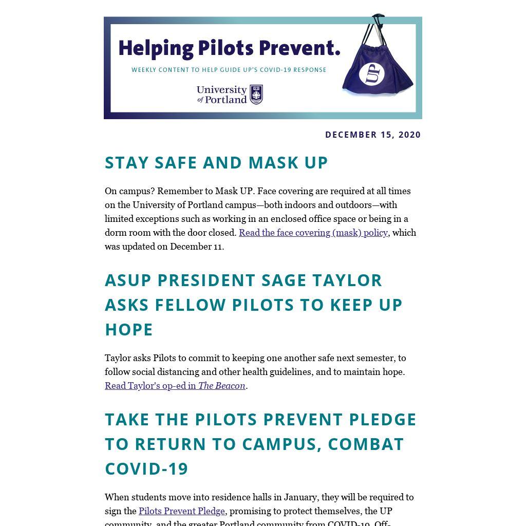 - Get a flu shot. All UP students, faculty, and staff are encouraged to get a flu shot to reduce the number of illnesses on campus and in the community this winter.