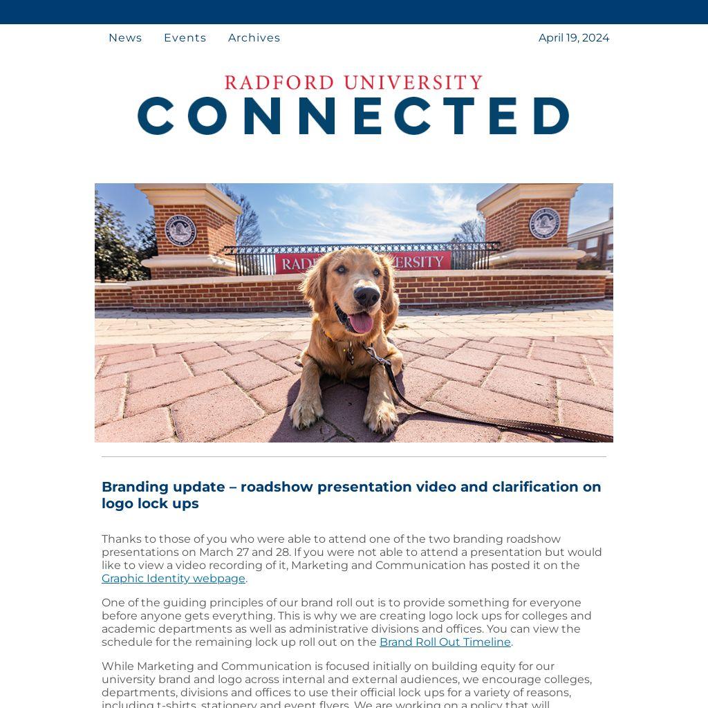 The full schedule of events is included in the April 12 edition of Radford University CONNECTED.