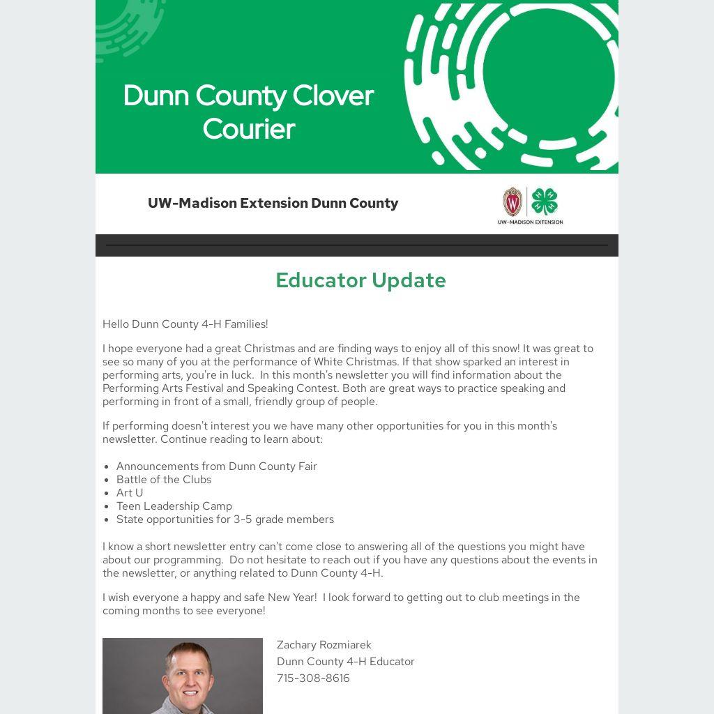 I know a short newsletter entry can't come close to answering all of the questions you might have about our programming. Do not hesitate to reach out if you have any questions about the events in the newsletter, or anything related to Dunn County 4-H.