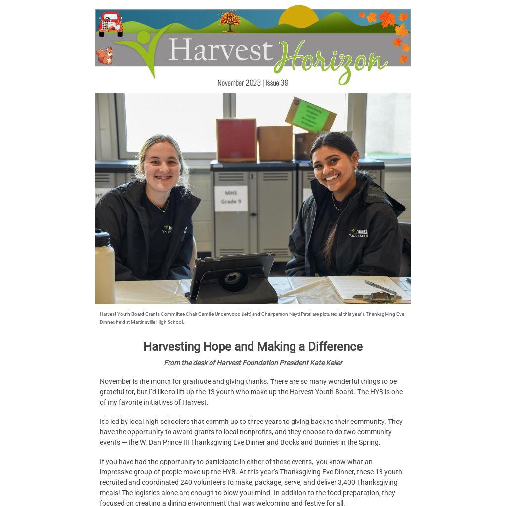 November is the month for gratitude and giving thanks. There are so many wonderful things to be grateful for, but I’d like to lift up the 13 youth who make up the Harvest Youth Board. The HYB is one of my favorite initiatives of Harvest.