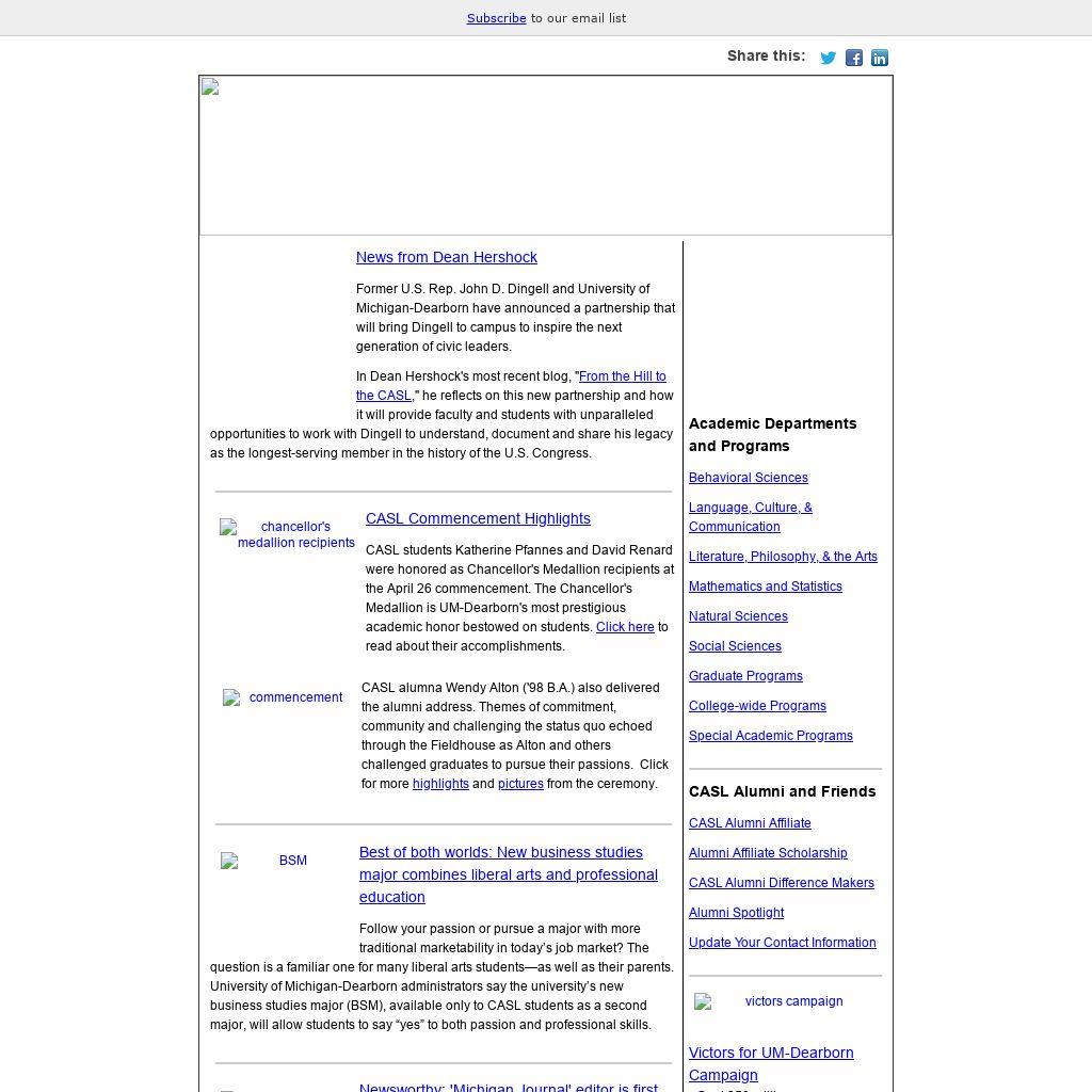 | Follow your passion or pursue a major with more traditional marketability in today’s job market? The question is a familiar one for many liberal arts students—as well as their parents. University of Michigan-Dearborn administrators say the university’s new business studies major (BSM), available only to CASL students as a second major, will allow students to say “yes” to both passion and professional skills.