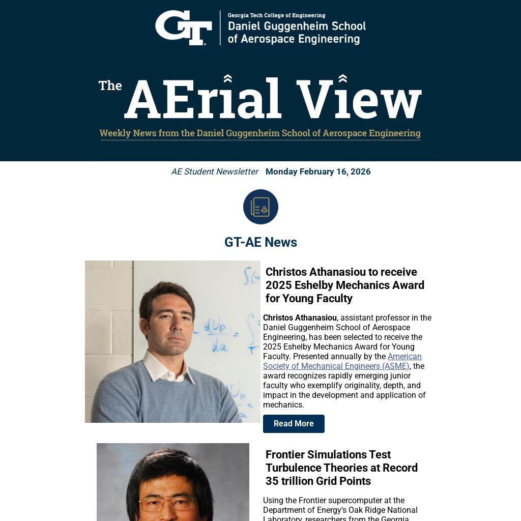 Christos Athanasiou, assistant professor in the Daniel Guggenheim School of Aerospace Engineering, has been selected to receive the 2025 Eshelby Mechanics Award for Young Faculty. Presented annually by the American Society of Mechanical Engineers (ASME), the award recognizes rapidly emerging junior faculty who exemplify originality, depth, and impact in the development and application of mechanics.