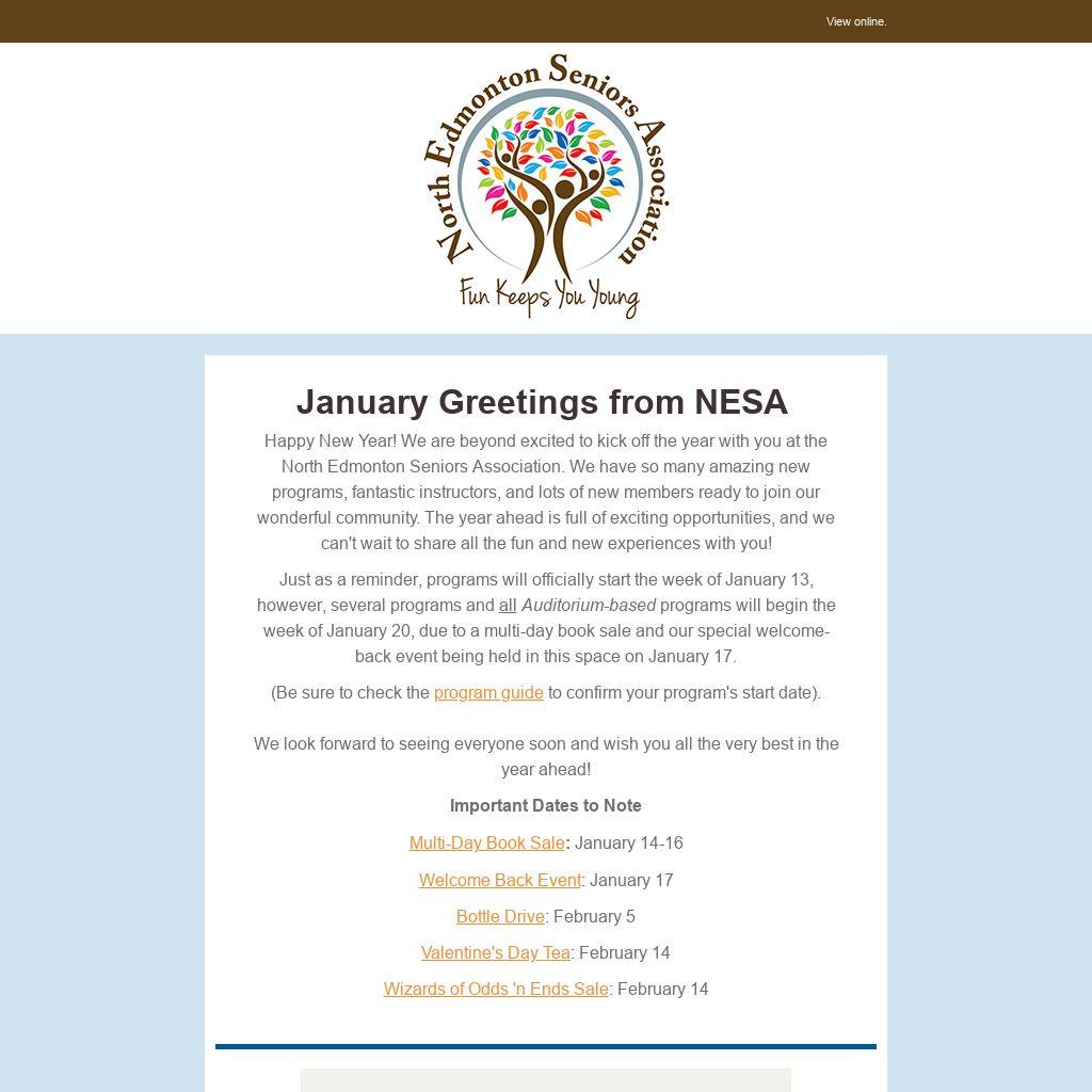 Happy New Year! We are beyond excited to kick off the year with you at the North Edmonton Seniors Association. We have so many amazing new programs, fantastic instructors, and lots of new members ready to join our wonderful community. The year ahead is full of exciting opportunities, and we can't wait to share all the fun and new experiences with you!