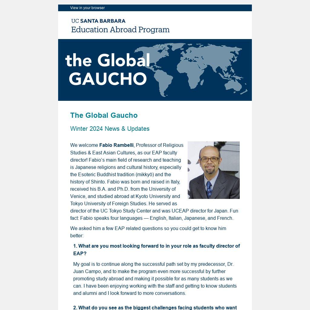 We welcome Fabio Rambelli, Professor of Religious Studies & East Asian Cultures, as our EAP faculty director! Fabio’s main field of research and teaching is Japanese religions and cultural history, especially the Esoteric Buddhist tradition (mikkyō) and the history of Shinto. Fabio was born and raised in Italy, received his B.A. and Ph.D. from the University of Venice, and studied abroad at Kyoto University and Tokyo University of Foreign Studies. He served as director of the UC Tokyo Study Center and was UCEAP director for Japan. Fun fact: Fabio speaks four languages — English, Italian, Japanese, and French.