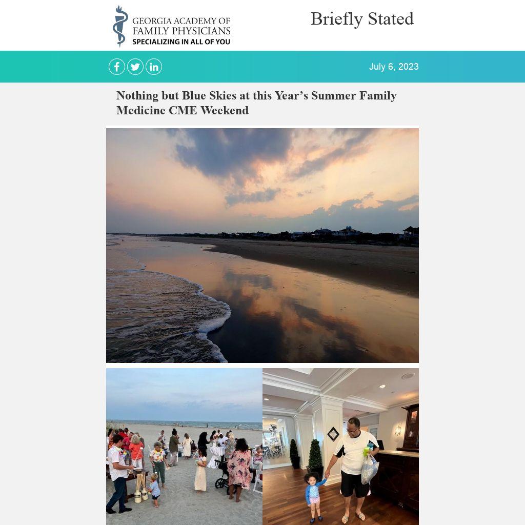The Georgia Academy of Family Physicians, in collaboration with the Georgia Primary Care Association, hosted its annual 2023 Summer Family Medicine Weekend on June 8-11 on the Isle of Palms, SC. Attendees flocked to the beach for excellent CME, camaraderie, and industry networking. Wild Dunes Resort also proved to be the perfect backdrop to the meeting, providing a variety of activities and amenities, plus gorgeous views, all along the coast of South Carolina.