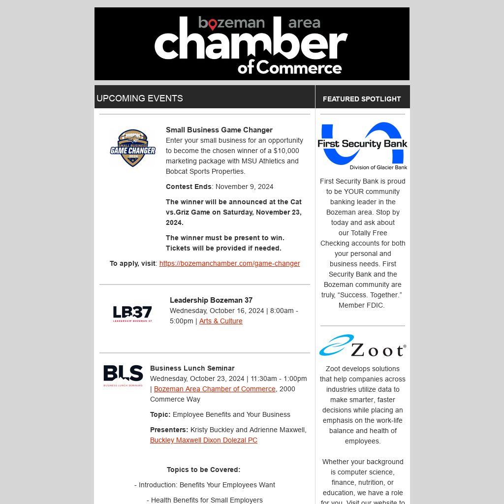 Small Business Game Changer Enter your small business for an opportunity to become the chosen winner of a $10,000 marketing package with MSU Athletics and Bobcat Sports Properties.