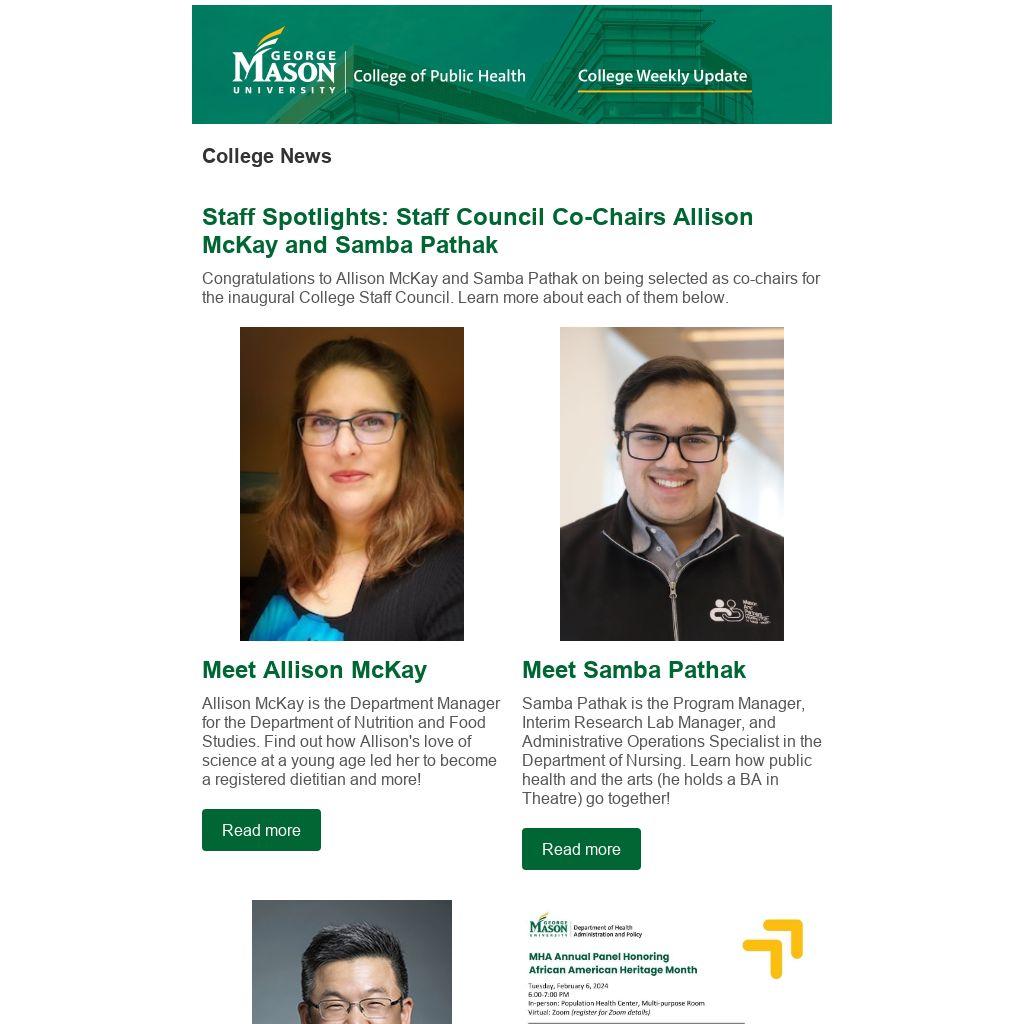 Staff Spotlights: Staff Council Co-Chairs Allison McKay and Samba Pathak |
