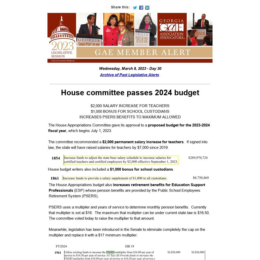 The House Appropriations Committee gave its approval to a proposed budget for the 2023-2024 fiscal year, which begins July 1, 2023.
