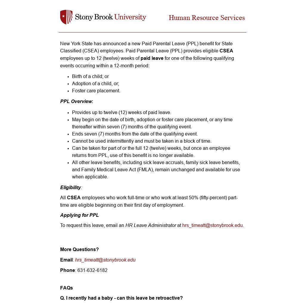 To request this leave, email an HR Leave Administrator at hrs_timeatt@stonybrook.edu.