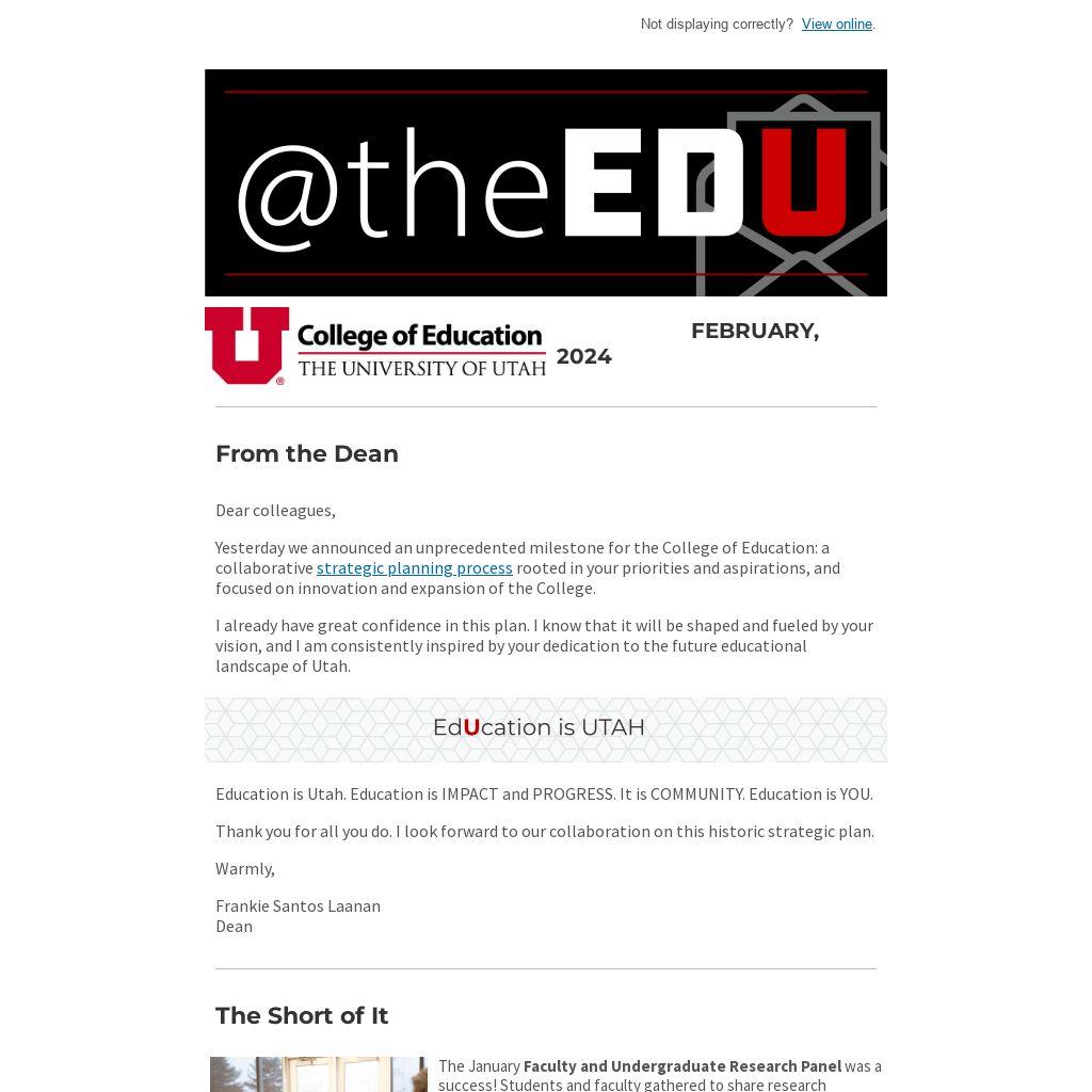 Education is Utah. Education is IMPACT and PROGRESS. It is COMMUNITY. Education is YOU.