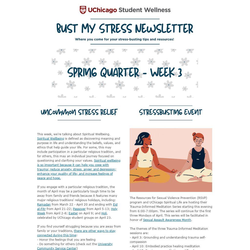 If you're interested in starting to explore a new spiritual journey, check out this article about the science of spirituality. If you are interested in engaging with your spiritual wellbeing at UChicago, check out UChicago Spiritual Life for additional support.