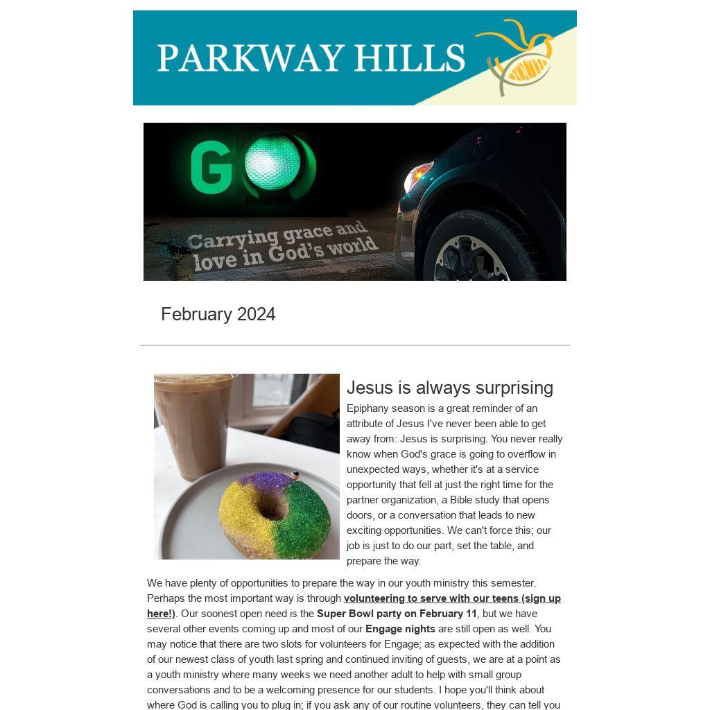 Jesus is always surprising Epiphany season is a great reminder of an attribute of Jesus I've never been able to get away from: Jesus is surprising. You never really know when God's grace is going to overflow in unexpected ways, whether it's at a service opportunity that fell at just the right time for the partner organization, a Bible study that opens doors, or a conversation that leads to new exciting opportunities. We can't force this; our job is just to do our part, set the table, and prepare the way.