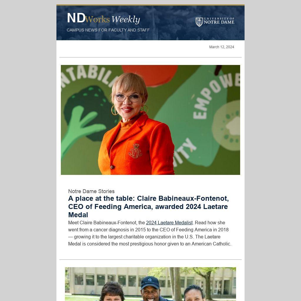 A place at the table: Claire Babineaux-Fontenot, CEO of Feeding America, awarded 2024 Laetare Medal