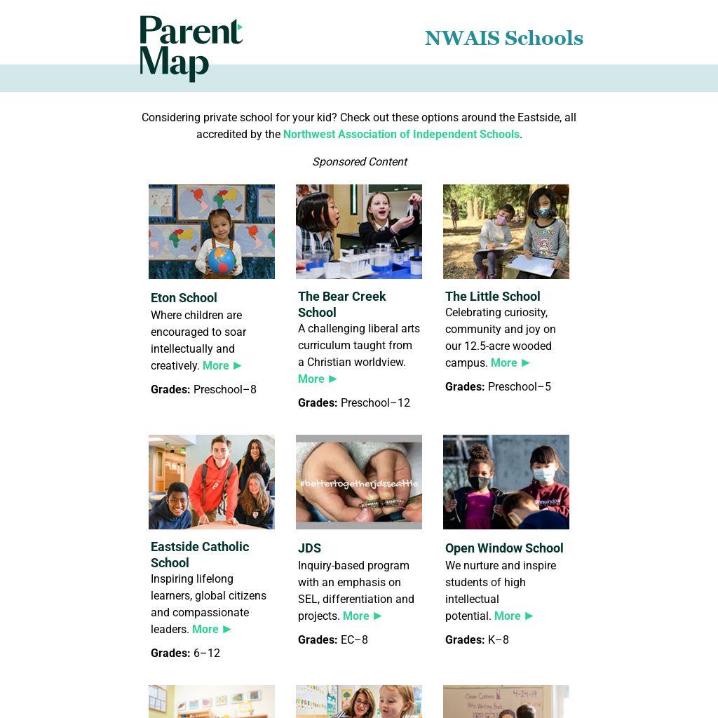 Flip through our NWAIS Schools Guide to learn about dozens of school programs and upcoming open houses in the Puget Sound area.