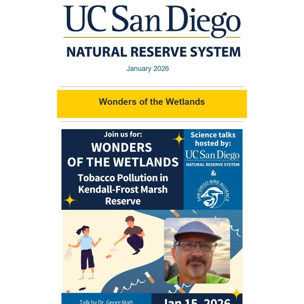 Love Your Wetlands Day is co-hosted by UC San Diego Natural Reserve System and the San Diego Bird Alliance in partnership with the Tijuana River National Estuarine Research Reserve and the City of San Diego.