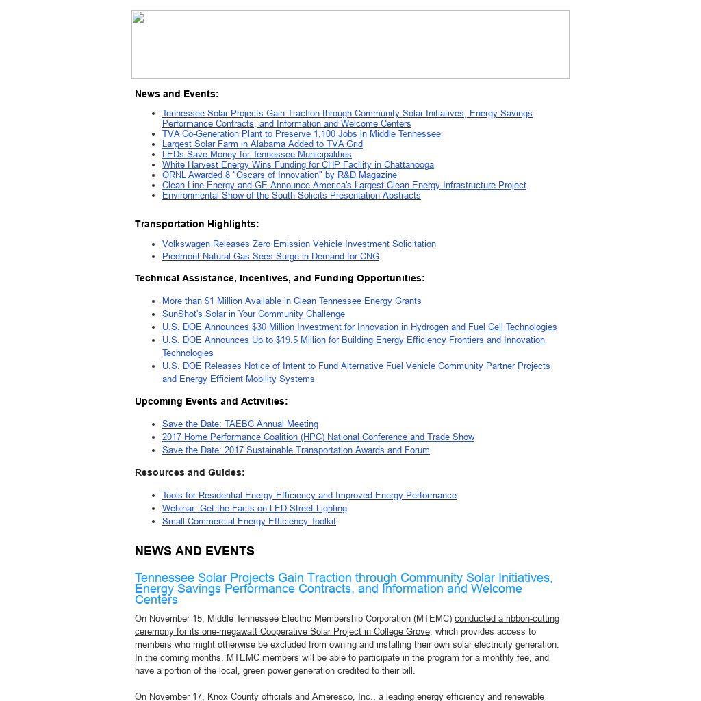 | Tennessee Solar Projects Gain Traction through Community Solar Initiatives, Energy Savings Performance Contracts, and Information and Welcome Centers