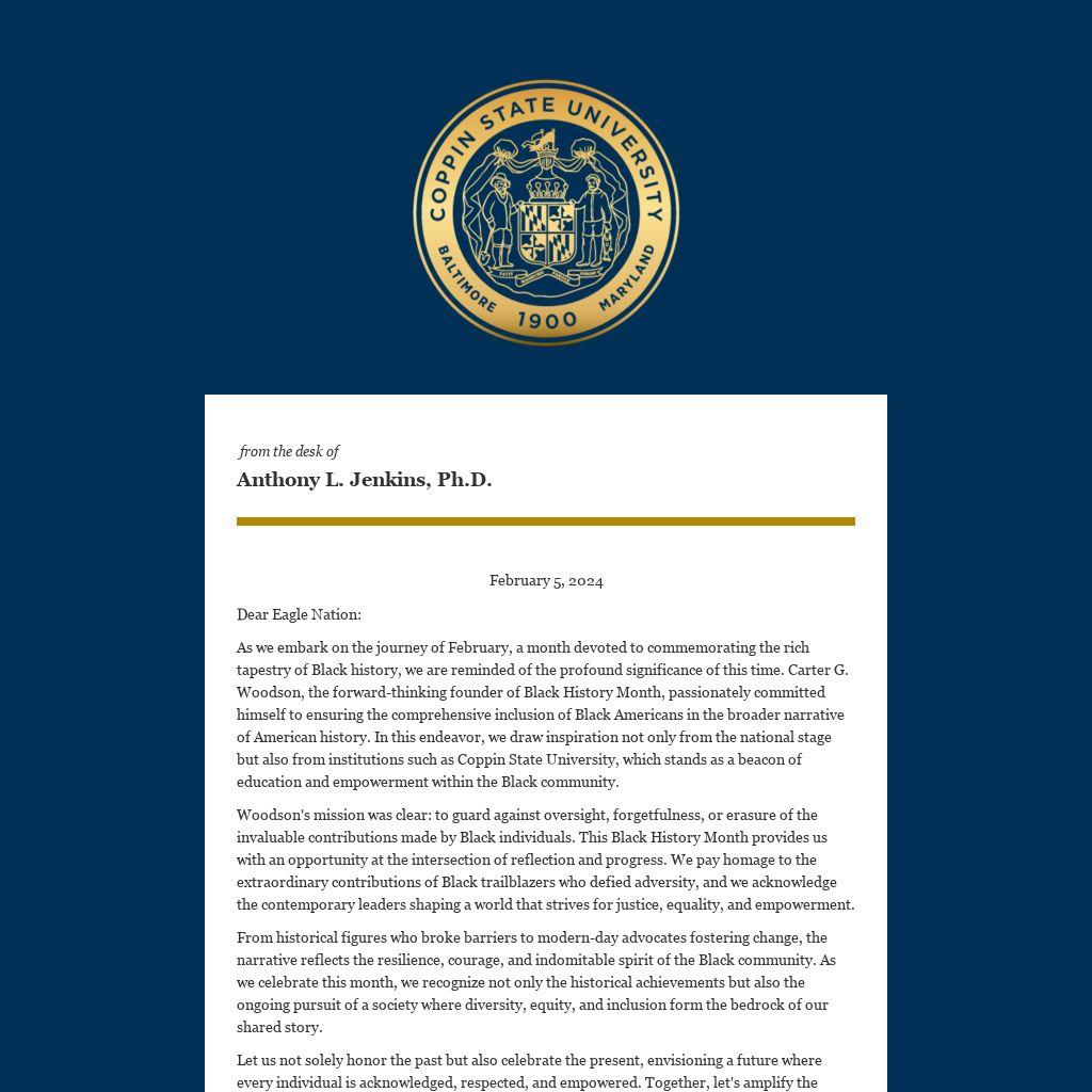 We look forward to your participation and the shared celebration of the accomplishments that define Coppin State University.