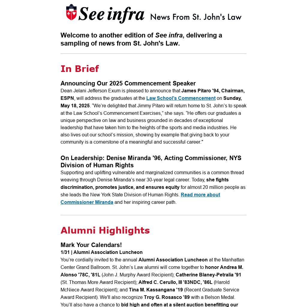 Note: By opting out of this email, you are opting out of all email communications from St. John's Law, including upcoming event emails, newsletters, and giving opportunities. If you would just like to be removed from the See infra newsletter, please email hallk1@stjohns.edu.