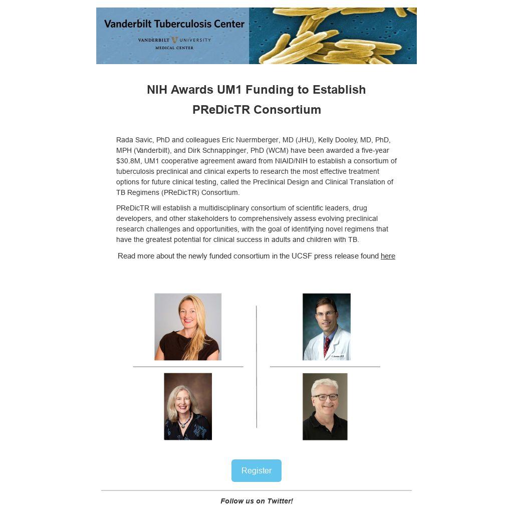 PReDicTR will establish a multidisciplinary consortium of scientific leaders, drug developers, and other stakeholders to comprehensively assess evolving preclinical research challenges and opportunities, with the goal of identifying novel regimens that have the greatest potential for clinical success in adults and children with TB.