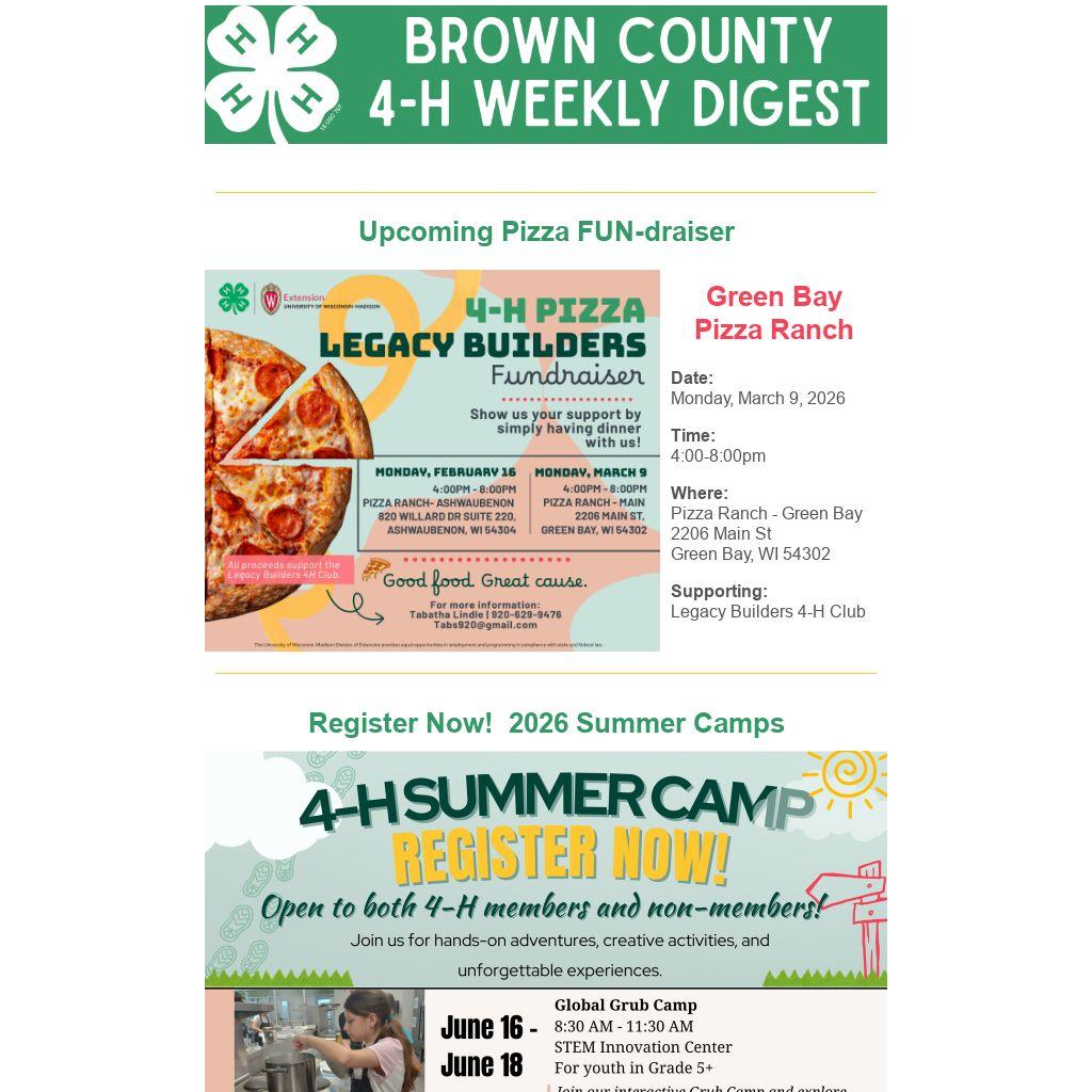 Graduating 4-H members are eligible and encouraged to apply for the Brown County 4-H Scholarship. Applications must be received by the Extension Office by 11:59pm March 1, 2026. Late applications will not be accepted. Guidelines and the application form are available on the 4-H website. Reading and following the directions carefully is recommended as the judges consider these criteria when scoring applications.