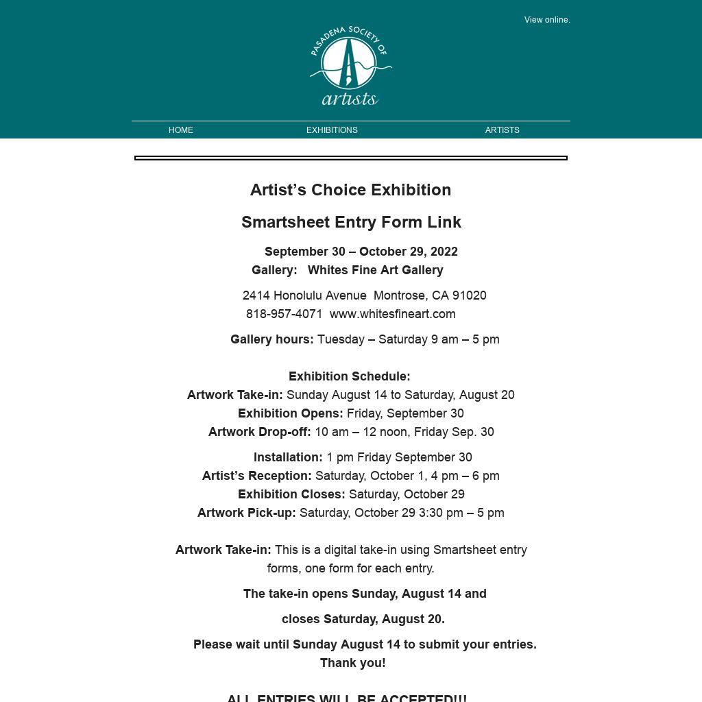 Email: Exhibitions@PasadenaSocietyofArtists.org