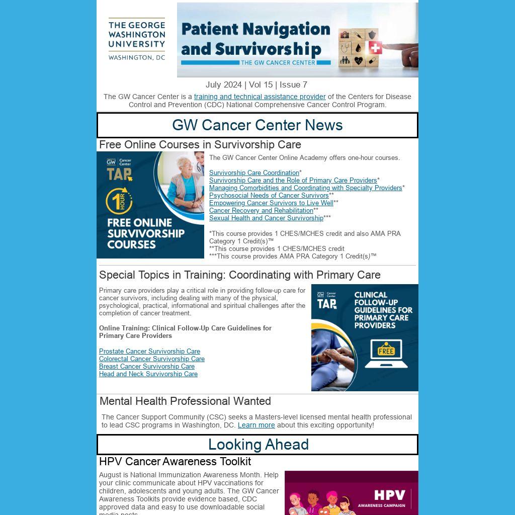 The GW Cancer Center is a training and technical assistance provider of the Centers for Disease Control and Prevention (CDC) National Comprehensive Cancer Control Program.