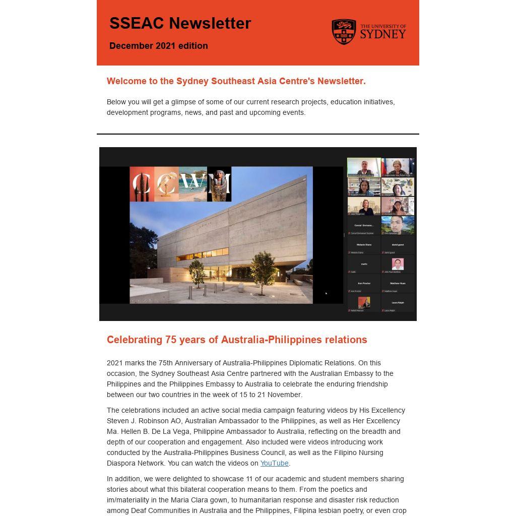 Welcome to the Sydney Southeast Asia Centre's Newsletter.