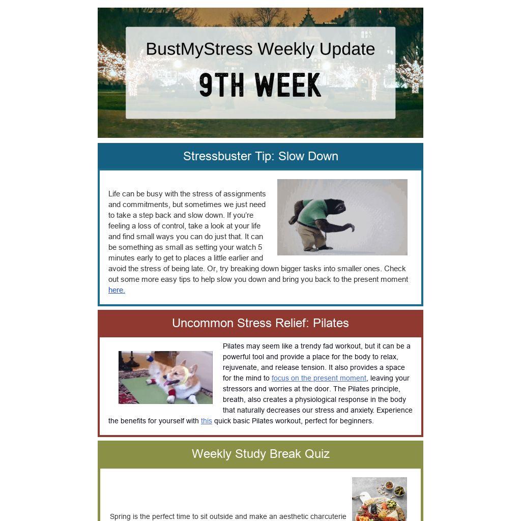 Life can be busy with the stress of assignments and commitments, but sometimes we just need to take a step back and slow down. If you’re feeling a loss of control, take a look at your life and find small ways you can do just that. It can be something as small as setting your watch 5 minutes early to get to places a little earlier and avoid the stress of being late. Or, try breaking down bigger tasks into smaller ones. Check out some more easy tips to help slow you down and bring you back to the present moment here.
