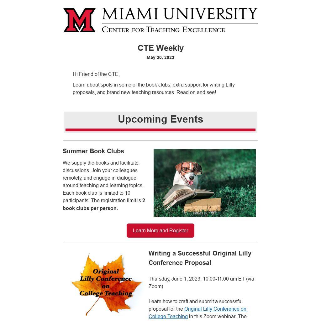 Learn how to craft and submit a successful proposal for the Original Lilly Conference on College Teaching in this Zoom webinar. The 42nd annual Lilly Conference will take place November 16-18, 2023, at Armstrong Student Center on the Oxford campus. Proposals are due June 20.