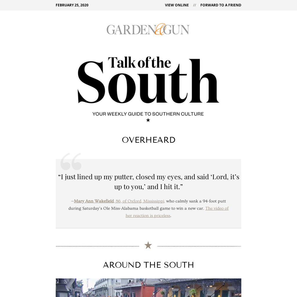 THIS WEEK'S QUESTIONTell a Southern story using just five words.