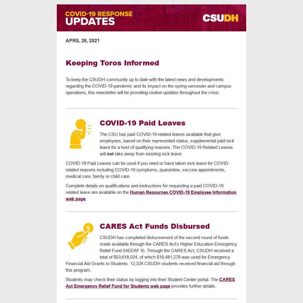 Please note: individuals who receive the COVID-19 vaccine and experience side effects within 24 to 48 hours do not need to call the CSUDH COVID-19 Hotline to report symptoms.
