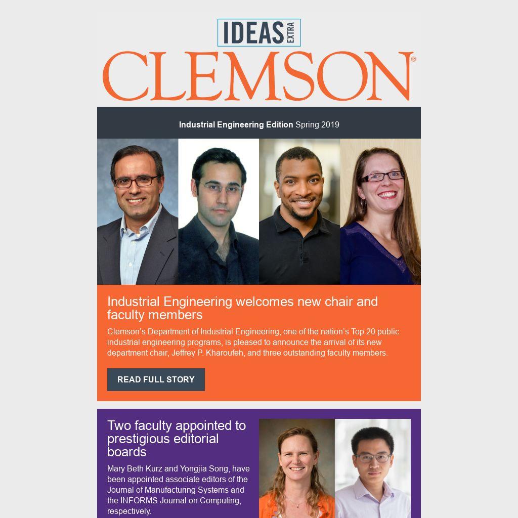 Clemson’s Department of Industrial Engineering, one of the nation’s Top 20 public industrial engineering programs, is pleased to announce the arrival of its new department chair, Jeffrey P. Kharoufeh, and three outstanding faculty members.