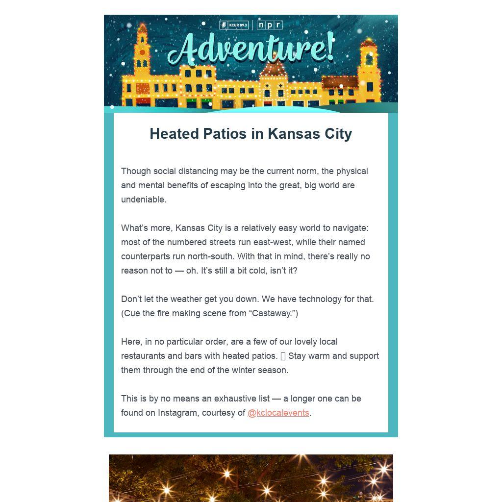 What’s more, Kansas City is a relatively easy world to navigate: most of the numbered streets run east-west, while their named counterparts run north-south. With that in mind, there’s really no reason not to — oh. It’s still a bit cold, isn’t it?
