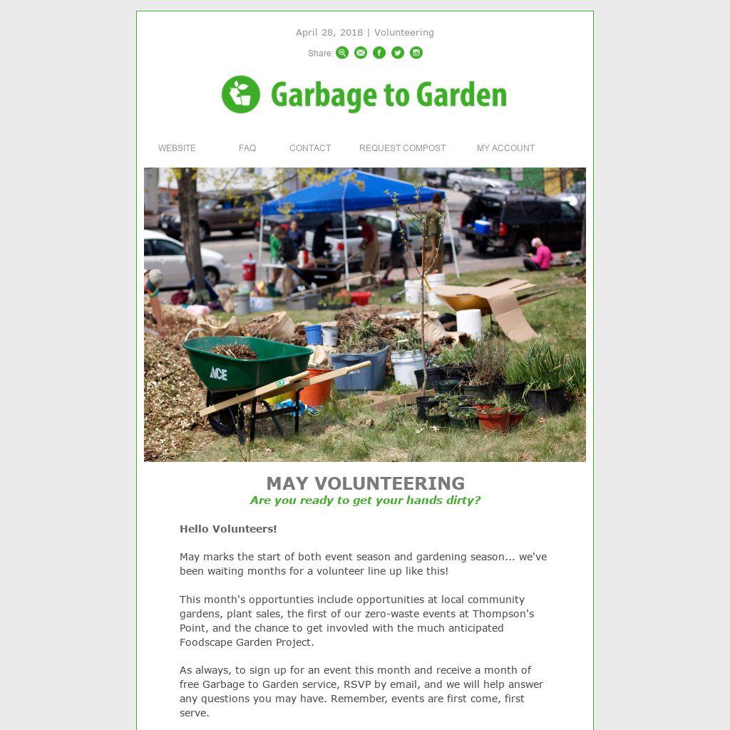 As always, to sign up for an event this month and receive a month of free Garbage to Garden service, RSVP by email, and we will help answer any questions you may have. Remember, events are first come, first serve.