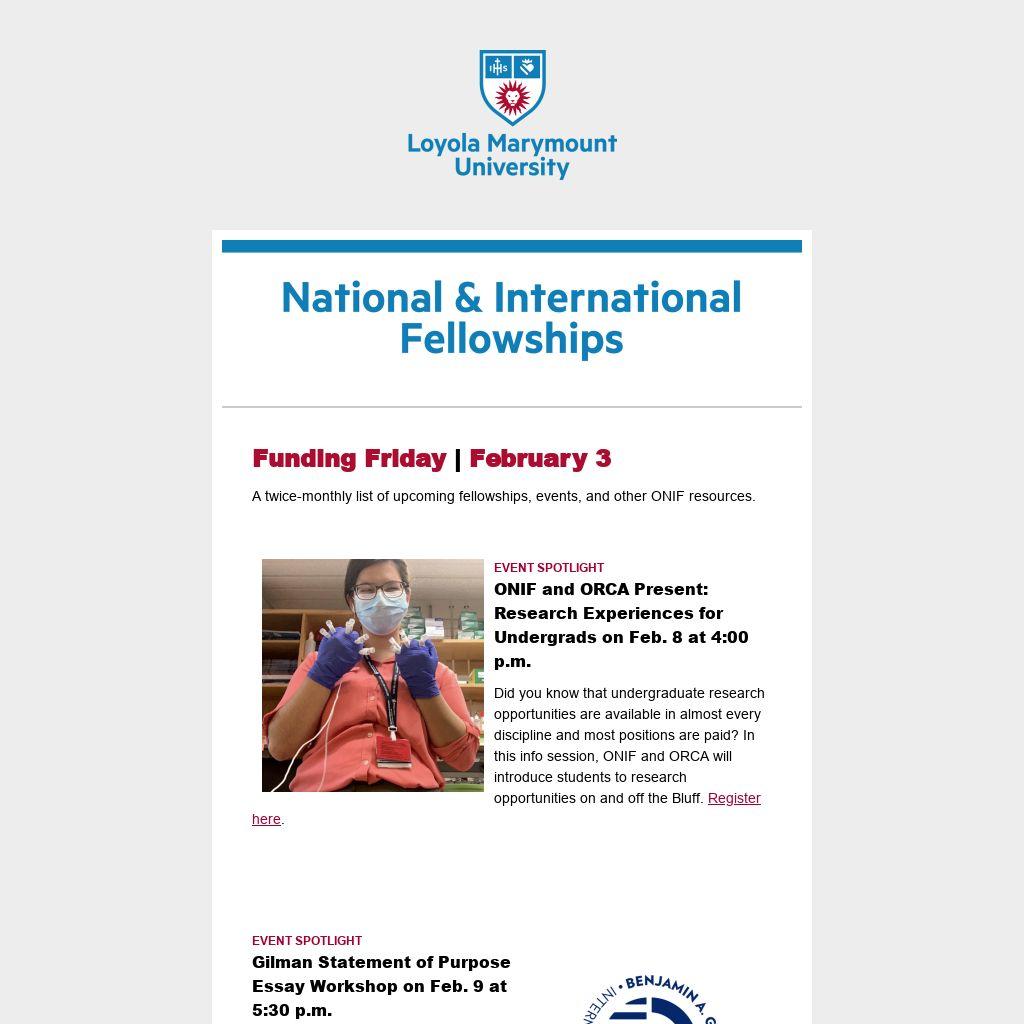 A twice-monthly list of upcoming fellowships, events, and other ONIF resources.