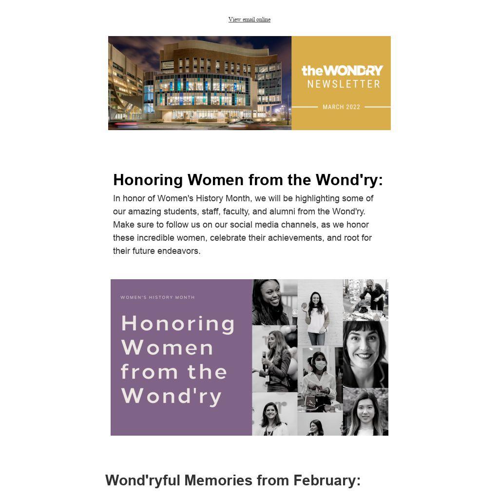 In honor of Women's History Month, we will be highlighting some of our amazing students, staff, faculty, and alumni from the Wond'ry. Make sure to follow us on our social media channels, as we honor these incredible women, celebrate their achievements, and root for their future endeavors.