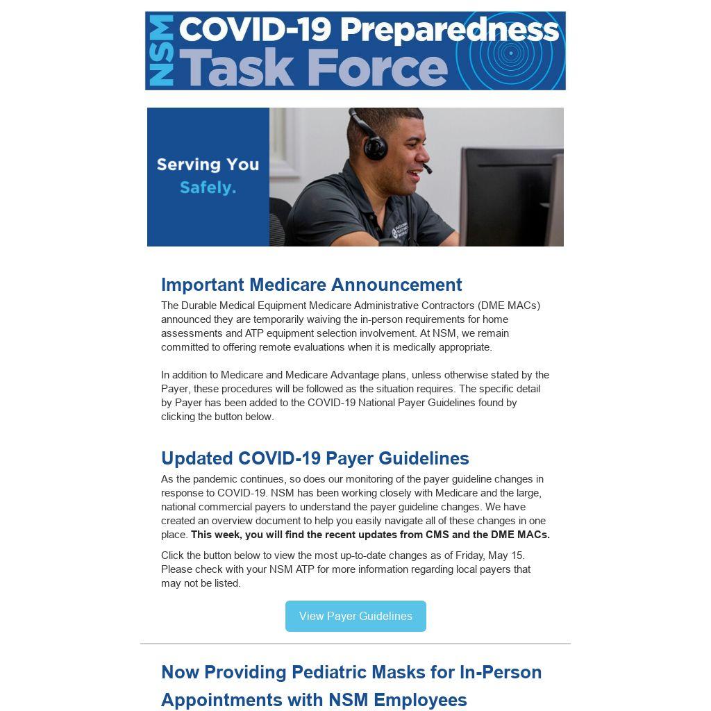 As the pandemic continues, so does our monitoring of the payer guideline changes in response to COVID-19. NSM has been working closely with Medicare and the large, national commercial payers to understand the payer guideline changes. We have created an overview document to help you easily navigate all of these changes in one place. This week, you will find the recent updates from CMS and the DME MACs.