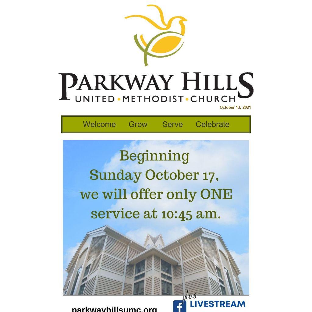 Throughout the month of October, as we focus on stewardship and pray over our 2022 gifts and pledges, we will use our time in worship to remember the beginning calling that led to Parkway Hills. We will reflect on how we are carrying on that original vision and mission with our prayers, presence, gifts, service, and witness. Parkway Hills began in 1994 with a dream of offering a fresh expression of God’s love through worship, study, service, and fellowship. We began two weeks ago focusing on God’s scandalous, extravagant love using Romans 8. Last Sunday, Romans 14 and 15 helped us see how to be love by being a safe space for those who have never experienced church. This Sunday we will focus on the word “home.” How might we be a people that create a space where those who enter say, “This feels like home.” Our guest preacher will be Rev. Chris Brooking Richardson and we will move to only one worship service at 10:45. With only 15 remaining payments left on our mortgage, we commit to living out the original dreams of Parkway Hills. Let us finish strong and stay strong by remembering why we started in the first place!