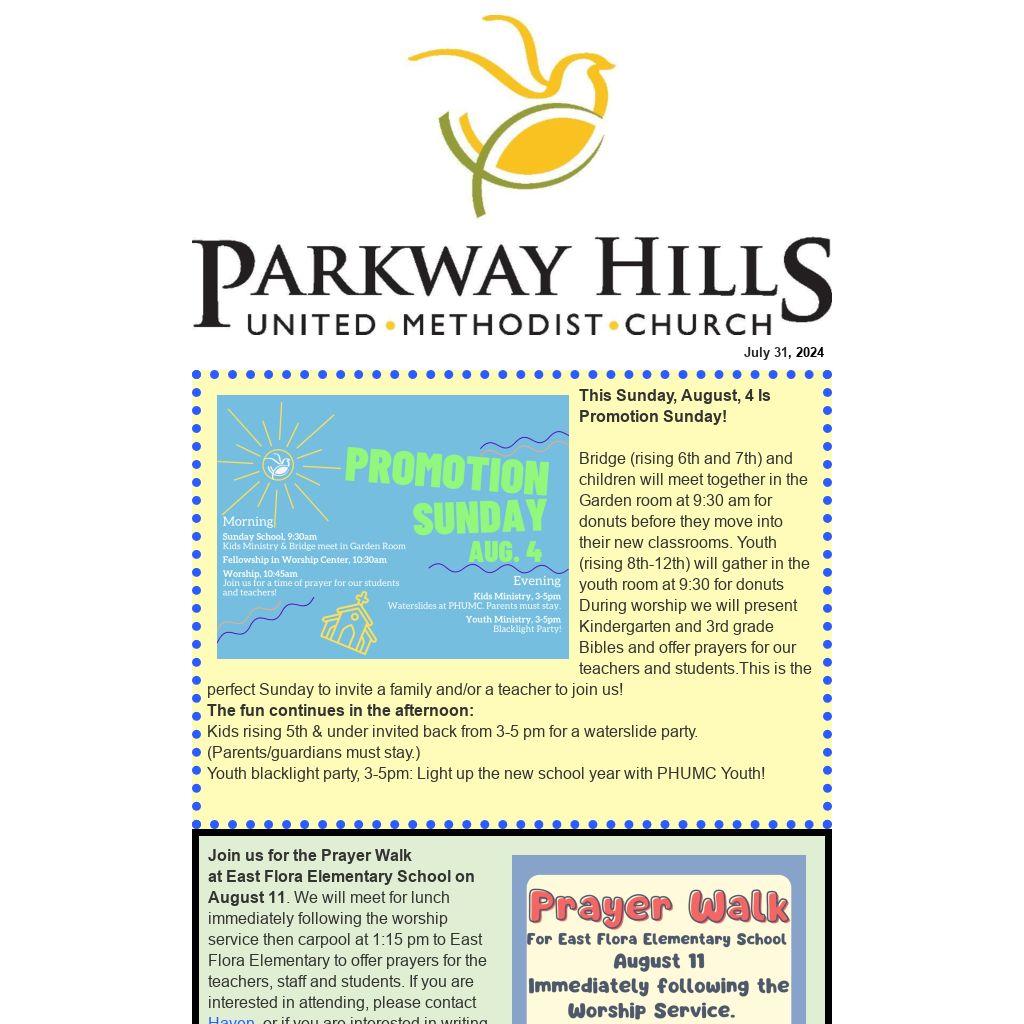All rising 6th and 7th graders are welcome to attend. Meet at PHUMC at 5:30 on Friday.